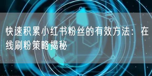 快速积累小红书粉丝的有效方法:在线刷粉策略揭秘