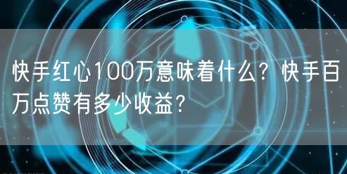 快手红心100万意味着什么?快手百万点赞有多少收益?