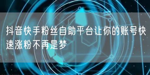 抖音快手粉丝自助平台让你的账号快速涨粉不再是梦