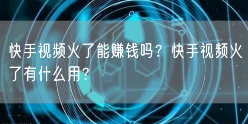 快手视频火了能赚钱吗?快手视频火了有什么用?