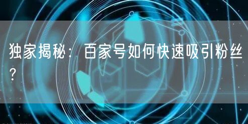 随着社交媒体的不断发展,百家号已经成为了很多人分享知识和观点的平台。然而,如何在这个平台上快速吸引粉丝,成为了每个作者关注的焦点。本文将为你独家揭秘百家号吸引粉丝的秘诀。