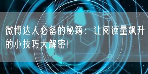 微博达人必备的秘籍:让阅读量飙升的小技巧大解密!