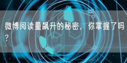 通过以上三点策略,你可以提升微博的阅读量和影响力。当然,实际操作中还需要不断尝试和探索适合你的方法。掌握这些技巧后,你也可以在微博上脱颖而出,成为行业内的佼佼者。让我们一起揭秘微博阅读量飙升的秘密吧!